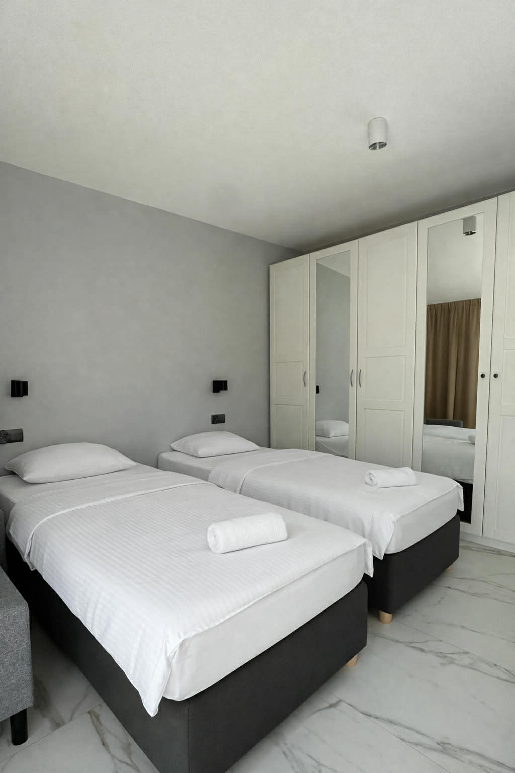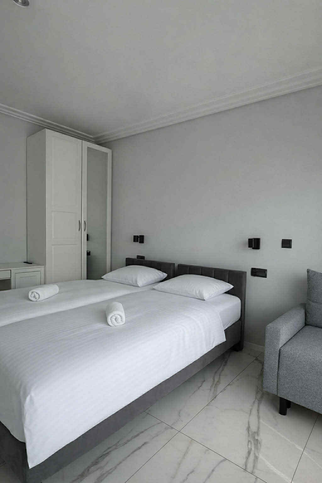 Oferujemy cztery w pełni wyposażone apartamenty – idealne zarówno na pobyty turystyczne, jak i służbowe. Każdy apartament posiada prywatną łazienkę, klimatyzację, szybki internet oraz udogodnienia pozwalające na komfortowy pobyt krótko- i długoterminowy. Zapewniamy spokojną atmosferę, nowoczesne wnętrza oraz wszystko, czego potrzeba, by poczuć się jak w domu.